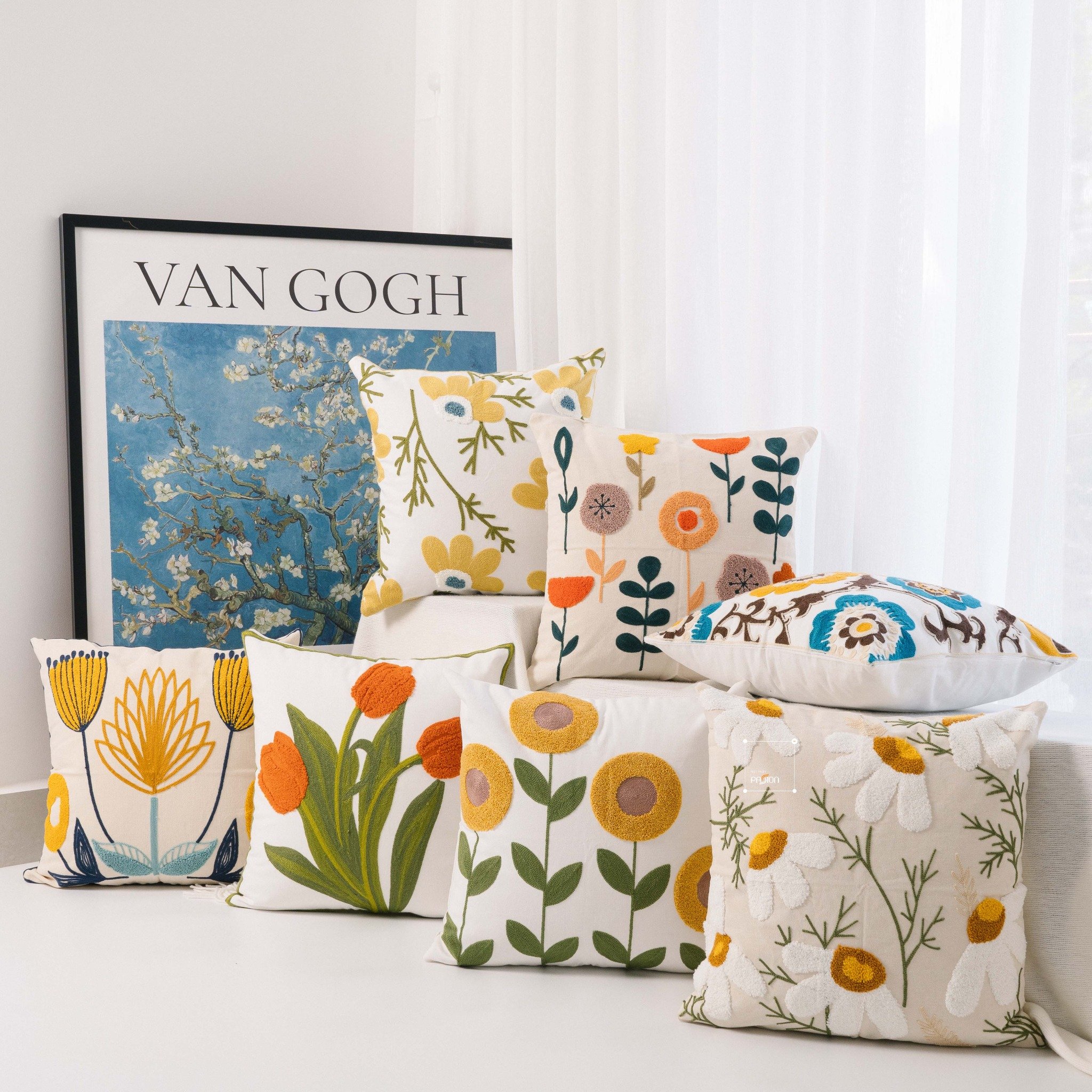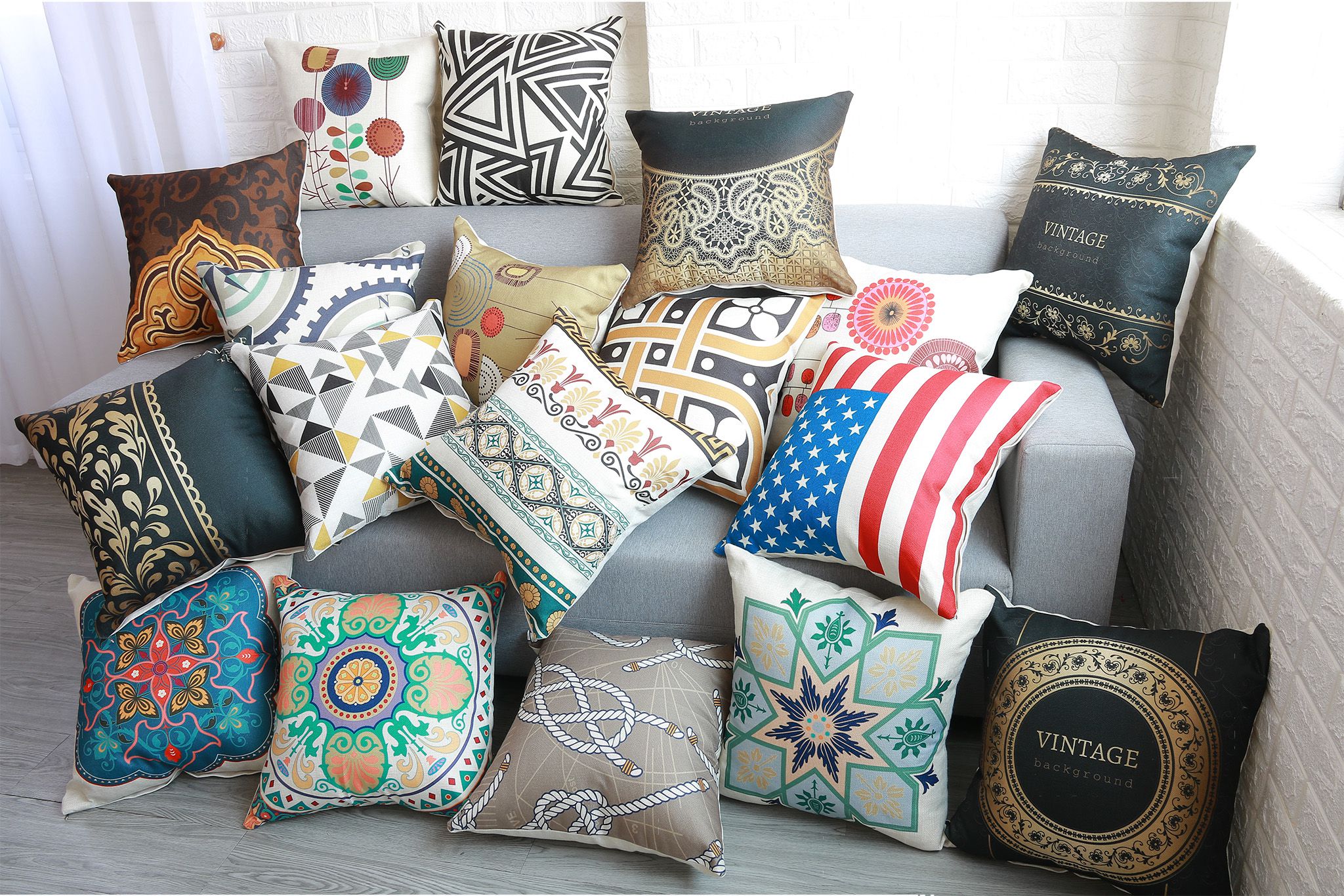 Họa tiết trên gối cũng góp phần tạo nên phong cách. Sọc, caro, hoa văn hình học phù hợp với phong cách hiện đại, tối giản. Hoa văn cổ điển, lãng mạn thích hợp với phong cách tân cổ điển. Họa tiết thổ cẩm, tribal, trừu tượng lại là đặc trưng của phong cách bohemian.