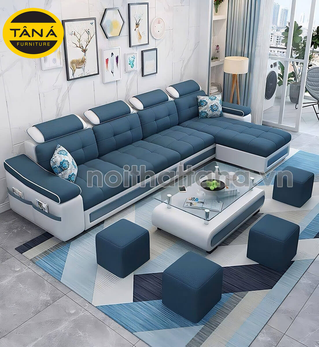 • Sofa góc (Sofa chữ L): Tối ưu hóa không gian, đặc biệt hiệu quả với các phòng khách có diện tích vừa và lớn, hoặc có góc chết.